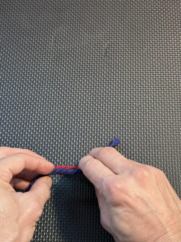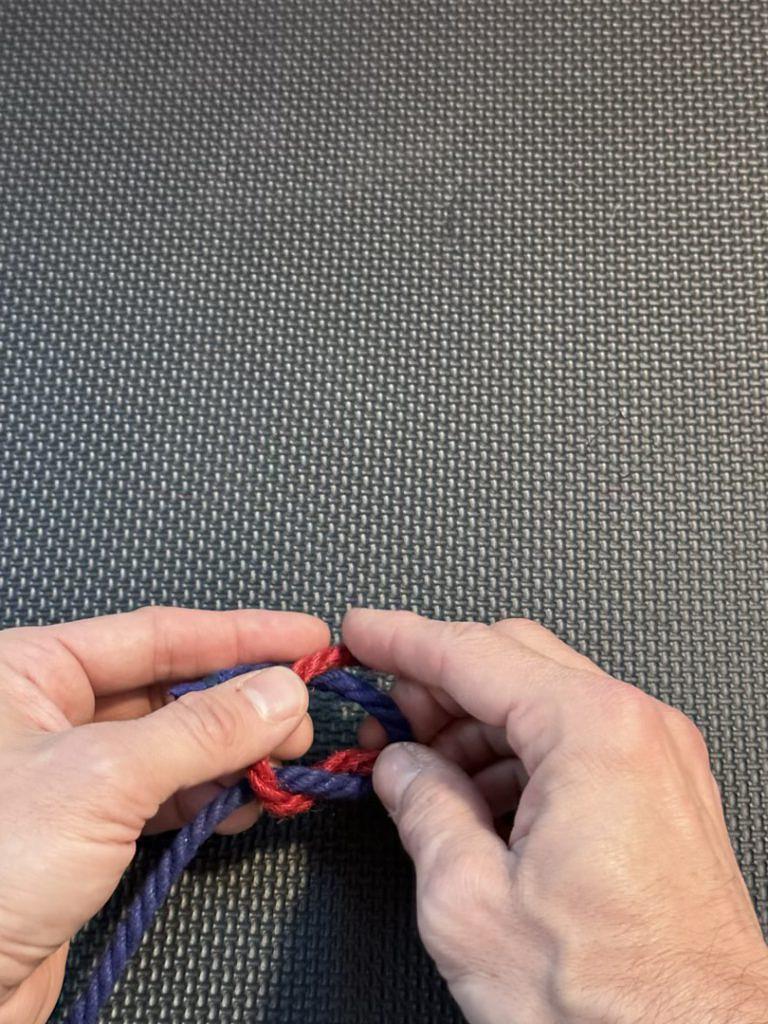 Let's look at what that looks like in reverse. In the videos below, we start with the red rope (the right rope going over the left rope).